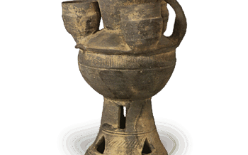 日本 須恵器 台付七連杯 須恵器 台付七連杯出土于名古屋市守山区池下古墓6世纪高26.3厘米,直径34.2厘米,底座直径12.7厘米名古屋市博物馆这是一组七只带盖杯,放置在两层镂空底座上。杯盖上有扁平的圆形把手,中间有一个,周... 2024.12.15 日本杯須恵器