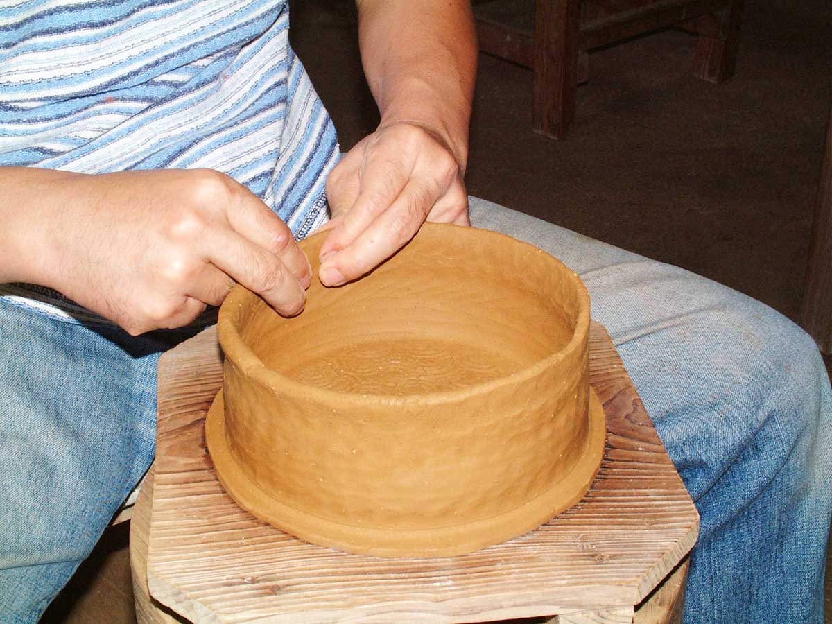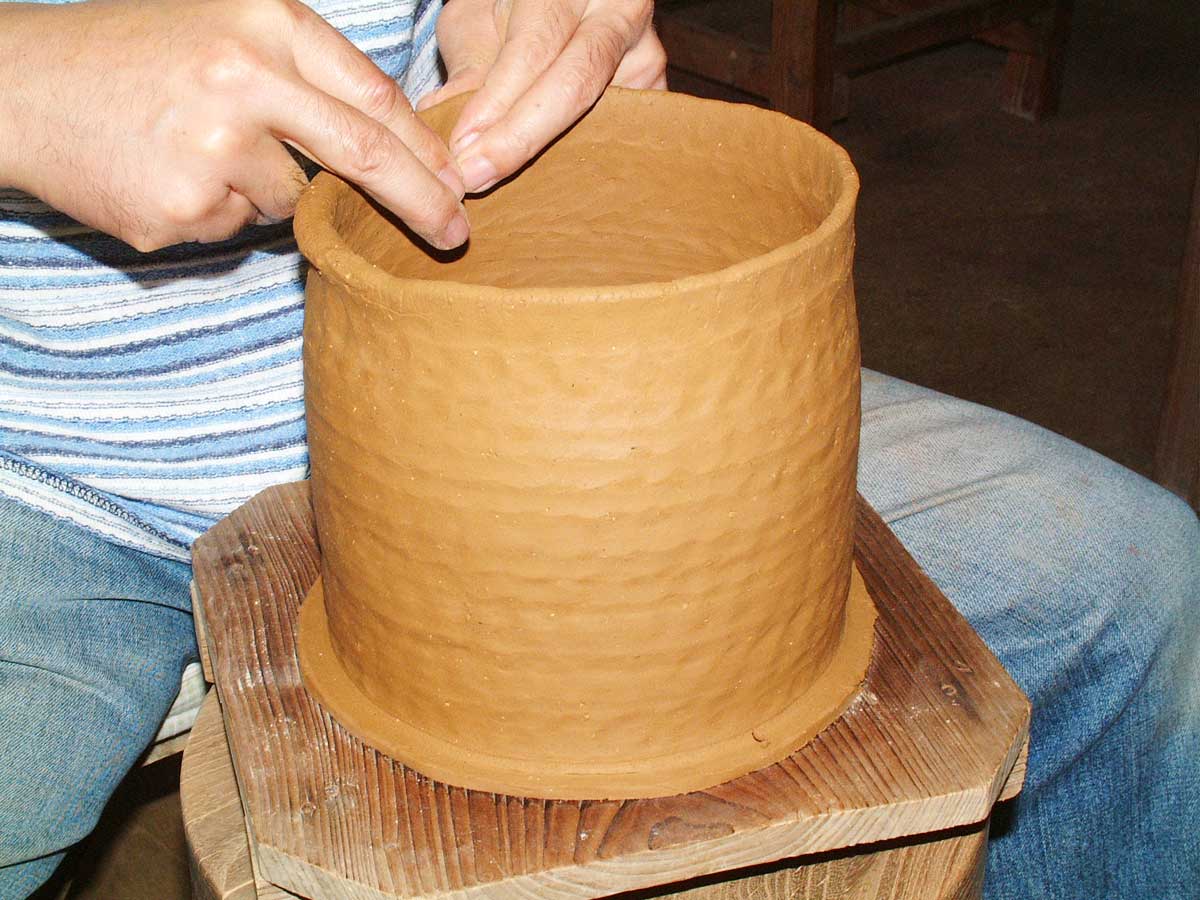 3.底板よりより紐土を輪積み
