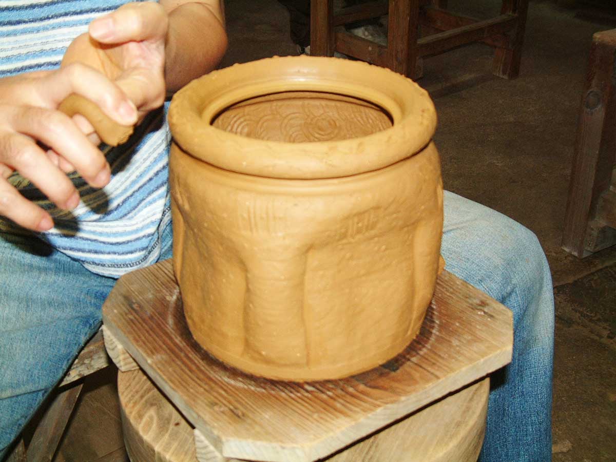 より紐土の太さは器物の大きさに比例すると共に細ければ細いほど器物の厚みが薄くなり、全体には軽く仕上がります。叩き造りの重要性がここにあると言って過言では無いようです。