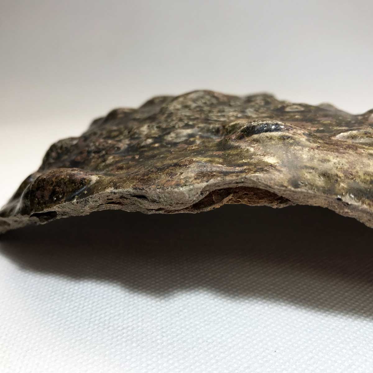 ※その訳、その蓄積物は粘性が強く成形するときに薄く仕上げるのに最適、または有機物が焼成の時に塩基成分が発散し土を焼き締める要因になります。古唐津の陶片で確認すると、断面を見るかぎり二種類の土の層が見えること。温度が上がって焼成された器物を見ると煎餅みたいに所々にブク(塩基成分が発するガスによる)が生じていることなどです。