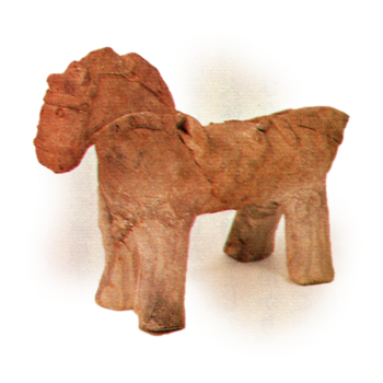 手挫ねによって10cmから20cm前後の長さに馬を小さく象った土製品。