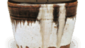 鉄分の多い粗相な丹波土に、黒褐色のいわゆる黒飴釉がかかっています。