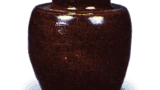 真黒茶壺 まぐろちゃつぼ お話marusankakusikaku 2011.07.272023.09.20 近江信楽焼の真黒茶壺は大は五〇斤入り、中は二五斤入り、小は一〇斤入りであります。その製造は近代に始まったもので、尾張瀬戸の工人が信楽に来てその釉法を伝えたものであるとのこと。(『日本陶1史』)