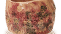 大火割れがあり、総体に赤土に失透ぎみの釉がむらむらとかかり、口縁や胴に白溜りが著しく、寂び味のある景である。