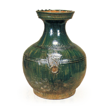 中国漢代に栄えた酸化銅を呈色剤とする低火度鉛釉陶で、同系褐釉陶よりやや遅れて後漢から三国にかけて中国全土で盛んにつくられたようであります。