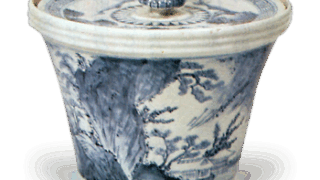 その上に肩の下から打曇紙の文様のように濃い釉が左右からたなびき、これに反して胴以下の置形が鮮明で、晴れやかです。