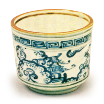 雲堂 うんどう お話 X Facebook はてブ LINE Pinterest コピー 2011.05.112023.05.29 中国明代に景徳鎮で産した民窯の青花磁で、渦巻状の雲文に楼閣や竜を配したものです。雲屋台ともいいます。香炉・火入などにつくられたものだが、わが国の茶人に珍重されて茶碗に転用されたものが多いようです。まれに赤絵で彩られたものがあります。この手の名物に井筒屋茶碗という呼び名の中国産染め付け茶碗があり、もと京都の井筒屋が所持しのちに前田家に入りました。(『高麗茶碗と瀬戸の茶入』『大正名器鑑』)