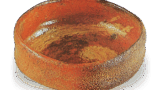 姿は腰低く、底は平らかで横広く張り、高台も低く、このあたり瀬戸黒の作風に似ています。また口辺は全体に少し端反りになって、ゆったりと波打ち、見込みは深く、広く、轆轤(ろくろ)目が大きくうず巻いています。内外とも、轆轤(ろくろ)で大きくひき上げた強い調子をそのままにして、箆使いとか指頭による変形は、ここではほとんど見られません。総体、茫洋としたなかに、気魄のこもった大きな風貌になっています。