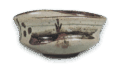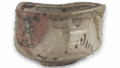 志野の香炉もまた少ないもので、伝世品は数点見ていますだけであります。青磁の口寄形香炉に倣った形で、胴にのびのびとした筆致で楼閣山水文様が描かれ、全面に滑らかに溶けた白釉がかかり、口や裾回りは赤く焦げています。素直に轆轤びきされた姿は端正で、内底に小さな目跡が三つ残り、まるく小さい高台が削り出されています。口寄形の聞香炉は黄瀬戸に多いようです。