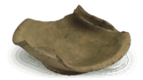 志野の大振りの鉢で腰に段がつき、口縁は内に捻りかえしてざんぐりとした不正の三角形をなしています。見込には沢瀉の文様をのびのびとあらわし、縁回りには唐草文様を描き、滑らかに溶けた白釉が全面に厚くかかっていますが、赤味には乏しい。おそらくこの種の鉢は大平または久尻の元屋敷辺りで焼かれましたものかと考えられ、ここの種の志野の鉢は一般に赤味に乏しく、釉膚のよく溶けたものが多いようです。底には美濃独特の折れ釘状の脚が三方に付き、目跡が四つ残っています。