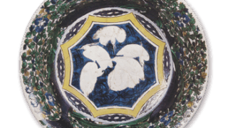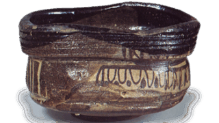 志野 山水文 鉢 志野志野 山水文 鉢 X Facebook はてブ LINE Pinterest コピー 2013.12.032024.01.26 志野 山水文 鉢 Shino bowl with lanrdscape designDiameter 26.7cm高さ7.5cm 口径28.7cm 四脚 志野桐文鉢とほぼ同形の鉢で、見込には蓬莱山のような山水文様があらわされています。天空には鳥が五羽飛び、開いた口部には桐のような唐草文様をめぐらせ、全体にかかった釉は滑らかであります。底の四方に脚が付き、脚の間には大きな目跡が不規則に四つ残り、さらに見込にも小さな目跡が五つ見られます。