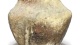 前図と同じ様式であり、同窯の作でしょう。一株の麦のような草を描いていますが、なかなか軽妙な筆行きであります。全面にかかった釉はよく溶けていますが赤味に乏しく、やや黄味をおびた釉膚に焼き上がっています。高台は同じく碁笥底式でいささか坐りが悪く、裏面の釉は少しちぢれています。見込にくっつきが数か所あり、目跡と区別がつきません。