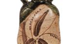 芒の根もとに雉のような鳥が蹲くまっています。きわめて大きな豪快な作振りの鉢であります。しかし、絵文様ににも釉にも初期の志野のような味わいはなく、おそらく末期的な作ですと考えられます。底は平らな碁笥底式になり、中央は浅く彫り込まれています。見込に目跡が五つ、高台内に大きな目跡が六つ残り、釉は一部かせています。