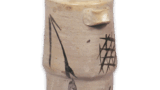 志野 菖蒲文 猪口 志野志野 菖蒲文 猪口 2014.01.252024.01.26 志野 菖蒲文 猪口 Shino wine cup with Ins designDiameter 6.3cm高さ8.4cm 口径6.3cm 底径4.2cm 円形小振りの猪口で、胴には菖蒲の文様が筆太に描かれています。 釉がかりは厚く、全体的にざんぐりと焼き上がっています。