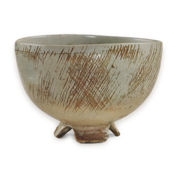 日本からの注文により朝鮮半島の慶尚南道金海地方で作られ、またこの種の茶碗の中に「金海」又は「金」の文字が彫られたものがあることからこの名があります。堅手茶碗に似て焼き締まり、また薄手で釉色は白く華やかです。口縁が桃形や洲浜形をしたものや割高台などの形状のほか、猫掻手と呼ばれる鋭い引っかき疵が文様のようにつけられているものもあります。