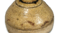 伊賀耳付花入 伊賀伊賀耳付花入 X Facebook はてブ LINE Pinterest コピー 2019.02.282024.01.23 伊賀耳付花入 Flower vase with two handles Height28.4cm 高さ28.4cm 口径11.2x11.9cm 底径13.5cm 肩下に深い彫りを二段つけ。胴を六角にしたもので、三方に叩文をつけています。ビードロ釉は薄く、全体に赤い焦げ膚を見せ、口部から裾に鉄釉が一筋くっきりと流れています。