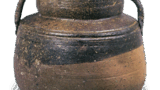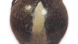 伊賀筒花入 伊賀伊賀筒花入 2019.03.012024.01.23 伊賀筒花入 Cylindrical flower vase Height 17.7cm 高さ17.7cm 口径10.8cm 底径12.8~13.1cm やや低い寸胴形の花入で、口端は矢筈風に折り込まれ、伊賀焼には珍しい姿であります。正面中央に赤い抜けを残して、口部から裾にかけてずっぽりとビードロ釉がかかっていますが、赤い抜けは他の器が近くに置かれていたので生じたもので、景色の美しい珍器であります。