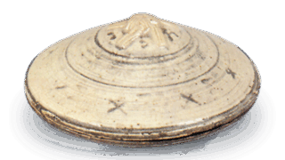 花橘 信楽 遠州好、こし土に出来、黄瀬戸のやうなるピイドロ薬の内茶溜りに、ビイドロ薬溜る、石はぜ至てとまかき石はぜ少々あり、薄作なり。箱黒掻合、金粉、蓋裏 歌……