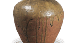 信楽茶碗 信楽信楽茶碗 2019.05.302024.01.23 信楽茶碗 高さ9.0cm 口径10。0×10.7cm 鳥台径4.8cm 半筒形の茶碗で腰をまるく、高台も素直に削り出されています。胴にくびれがあり、全体にややひずんでいます。高台畳付に糸切りの跡が残っています。口部から内外に灰釉がなだれるように降りかかり、土膚は赤くやわらかく焼き上がっています。信楽茶碗としてはやや古格を感じさせるもので、桃山時代の作でしょう。