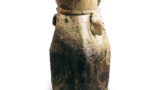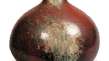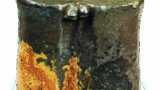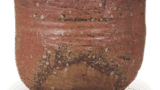 腰の張ったあたかも楽焼茶碗のような作振りの茶碗で、付高台の広い畳付には無造作な線彫りをつけています。胴の一方と見込に黄朽葉色の灰釉がかかっています。胴に一粒石をかみ、そこに小さな穴があいているので「蟻通し」の銘がつけられたのでしょう。