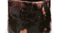 山轍壺を小さくしたような形の茶入で。景色の鮮やかな優作であります。低く立ち上がった口部は僅かに端反りになり、肩はきっかり、と衝き、胴裾で広く面を収って、まるい高台は糸底:二なっている、腰に段をつけているのが作振りをおもしろくしている丿茶褐色の釉が裾まで薄くかかり、肩から胴の一方:こかけて赤みをおびた朽葉色の灰釉が鮮やかにかかり、腰から底にかけて紫褐色の土膚を見せていますが、その膚合いは「生埜」とよく似てきめが細かい。内部は無釉で轆轤目が細かくめぐり、かすかに灰が降っています。