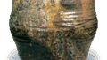 丹波矢筈口耳付水指 丹波丹波矢筈口耳付水指 X Facebook はてブ LINE Pinterest コピー 2019.07.092024.01.24 丹波矢筈口耳付水指 高さ17.9cm 口径12.0~16.0cm 底径18.0cm 備前焼または信楽の水指に似た作振りであるが、丹波焼であります。紐作りで轆轤仕上げをしています。胴には縦。横に太い箆目と檜垣文をつけ、左右の耳もざんぐりとしています。杉本捷夫氏によると- 審窯末期、桃山時代の作品で、丹波焼の茶陶としてはもっとも古いものとされています。表千家六世覚々斎原叟が底裏に「時雨にも雪にもよし破れ庵」と朱漆で直書きしています。底にはまるくくっつきの跡があり、口まわりにもくっつきの跡があります。