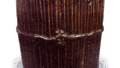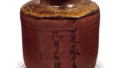 丹波の名産に朝倉山椒がある。その山椒の容器として、「朝倉山椒」の文字を刻した六角の壺が江戸時代初期に数多く焼かれたらしく、丹波焼の特産として広く知られています。この壺は、そうした朝倉山椒壺の代表的な作例の一つで、肩がきっかりと張り、口縁は玉縁に、胴は六角に作っていますが、いずれも同様の形式であります。正面に「朝倉山椒」の文字が刻されています。口部から胴裾にかけて飴釉がかかっていますが、肩や胴の一部に海鼠釉があらわれています。