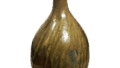丹波胴紐建水 丹波丹波胴紐建水 X Facebook はてブ LINE Pinterest コピー 2019.08.022024.01.24 丹波胴紐建水 高さ8.5cm 口径14.6×15.2cm 底径12.6cm京都民芸館 いわゆる束柴風の建水であるが、胴を七弁の輪花形に作り、胴半ばに紐を一筋めぐらしています。この種の建水としては稀に見る優作で、全面に鉄釉と灰釉を混ぜた釉をかけていますが、釉膚の景色も鮮やかであります。
