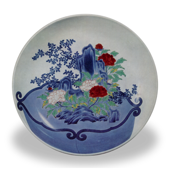 とはいうものの作品の意匠は、他のどの色絵磁器よりも多種多様で、しかも従来一般に指摘されているように、鍋島藩窯の意匠家たちが考えおよぶ限りのすべてのパターンに一中国的な発想の意匠においても一純日本的な様式を示そうとしているのは大きな特色であり、まことに興味深い。しかもそれを表現する技術的水準は、他の色絵磁器に比して極めて高い。染付の線描、濃(澄)染、さらに特種な染付技術である墨はじき、瑠璃染など、おそらく染付の技術としては、世界のどの窯よりも優れた技術を持っていたのではないだろうか。したがって、従来あまり注目されていないが、染付の作品にも格調の高いものが多い。だが鍋島焼を代表するものは、やはり染付下地の上に上絵付をしたいわゆる色絵磁器-わが国の古風な表現にしたがえば染錦手-である。白磁の素地が上質であるため色絵具の発色はやや薄く、気品を第一にして色と色とのハーモ二-を考慮している。その配色は一見して鍋島様といえるもので、他の色絵磁器にはないものである。