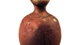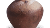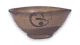 いわゆる半筒形に轆轤びきされた茶碗で、高台も端正に削り出されています。ここでさらに興味深いのは、この茶碗の胴に「御伊勢」の文字が長石釉であらわされ、また見込に「斎」の字が書かれていることであります。「御伊勢」と書かれた茶碗、それは明らかに伊勢の特需品であります。室町時代の茶会記にみえる「伊勢天目」、そしてこの「御伊勢」の茶碗、さらに『毛吹草』に 「伊勢天目」が美濃の名産として挙げられていることなど、それらは一連の流れの上に捉えることができるのでしょう。そして、この種の長次郎焼の茶碗と似た形態のものが、美濃の地で天正年間に焼かれていたことは明らかであり、大萱から、文字はないが類似の破片が出土しています。しかし、単純な器形であるから天正年間よりも降った時代にも焼かれていたかもしれません。