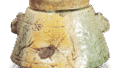 黄瀬戸 菖蒲文 平鉢 日本黄瀬戸 菖蒲文 平鉢 X Facebook はてブ LINE Pinterest コピー 2019.03.202023.10.13 黄瀬戸 菖蒲文 平鉢 高さ5.6cm 口径29.0cm 高台径15.2cm東京国立博物館 かなり大振りの鉢の縁を鐸状にし、内側に指で菊花風の深い彫りをつけています。菖蒲手黄瀬戸の鉢としては、やや早い時期の作品ではないかと思われる。ざんぐりとしたなかに力強さがあり、しかも素朴であります。見込に菖蒲の花を鋭く線彫りし、そこに.胆礬を点じています。見込に目跡が四つくっきりと残り、低く削り出された高台内には釉形の置跡も残っています。広田松繁氏が東京国立博物館に寄贈されたものであります。