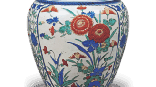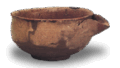 そこで亀裂に鉄をぬりこんで、その亀裂から水のもるのを防いだものであるらしいです。だから、焼成されると胴の中央に見えるような鉄の景色が出てきます。これを 茶にふさわしい景色として真似たのでしょう。それが伯庵茶碗の形式となってしまったと見られます。