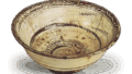 内面見込みは、こてで深くえぐって、正円にちかい茶だまりがありますが、まん中は兜巾のように立っています。口縁に鮒ではさんだあとがあり、これは釉色を黒くするために、焼き上がりますと、真っ赤なうちに窯から引き出して、急冷したことを示しています。
