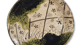 極めて興味深い作品であります。箱の蓋表に「せと茶碗なごや焼」と、小堀遠州の筆で書付されています。もちろんその輪から推して瀬戸系のやきものであることは確かであるが、そこに小堀遠州が「なごや焼」としていることは興味深い。これまで「なごや焼」と呼ばれた作品はこれ以外に見たことがなく、あるいは尾張徳川家の御用窯のどこかで焼かれたものであったかもしれません。しかもその作風は明らかに手裡ね風で、あまり上手なものではなく、だれかの手担ねであったことは確かであります。今後、この「なごや焼」というものがいかなる存在であったかが考究されねばならません。高台は付高台で。高台まわりに大きく窯疵があり、その高台の中に長石釉をかけているのも興味深い。