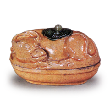 笠牛 かさうし お話 X Facebook はてブ LINE Pinterest コピー 2011.05.192023.06.23 交趾香合の一種。笠を背にした臥牛の蓋で、型物香合番付では東方一段十一位。笠は黄・青・紫色釉、牛は黄・緑その他いろいろ。