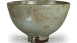 大悲山は、素地はきわめて鉄分の多い暗褐色の細かい胎土をなし、総体にかかった釉も非常によく溶けて、いわゆる井戸のように釉肌の荒々しいものではなく、鬼熊川のような光沢のあるつややかな釉調です。しかし釉はかなり厚くかかっているため、貫入はそれほど細かいものではなべ、高台まわりは一種の梅花皮(かいらぎ)状をなしていますが、これも井戸のように重厚な趣ではありません。白梅と比べて、素地、釉調ともにかなり異なった茶碗ではありますが、やや共通しているのは形状で、竹節状をなした低い高台、端ぞりの口造りなど、ほとんど同様の作ゆきをなしています。