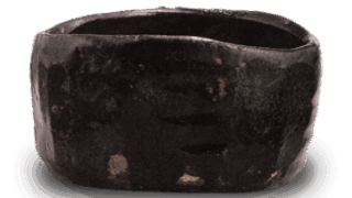 古来、加賀における仁清茶碗の中では、能久治の金筋茶碗とともに双璧と称され、ととに片男波は、作ぶりのおもしろさから、声価の高いものでした。その銘は、釉がかりの景が、波に似ていることからのものであることは、想像にかたくありません。