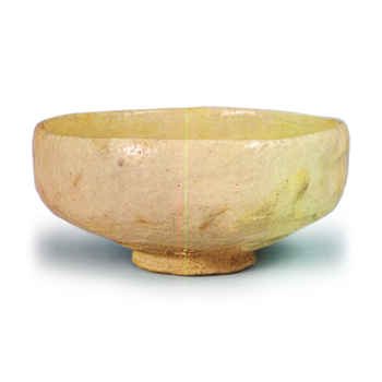 形は平茶碗が多く、山澄家本にも「手宜敷者形違、ふちにてかかへる、高台しまる程よし、黄赤浅黄シミ替り有上とす」とあるように、縁のややかかえぎみになり、高台の締まったものがよろこばれ’ている・器形や作ゆきは粉引の平茶碗によく似ていて、らくりは井戸よりは薄いですが、粉引よりはやや厚い・時代は井戸、井戸脇と同じく室町末と思われ、朝鮮のどこでつくられたかまだよくわかりません。しかし常識的に考えて、やはり慶尚南道と見るのが妥当ではないでしょうか。遺品の数は大井戸ほど多くはありませんが、井戸小貫入よりは多く、小井戸ぐらいはありましょう。