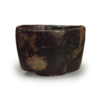 ところでこの種の筒形茶碗は、室町時代の末期から桃山時代にかけて、かなり賞玩されたらしく、千利休所持として有名な「挽木鞘」もほとんどこれと同形で、いわゆる「狂言袴」と称されている茶碗であり、他に「三島筒」も所持していたことから、特に利休は筒茶碗を愛用したことがうかがわれ、あるいは利休好みといわれる瀬戸黒の筒茶碗も、この種茶碗の形姿を倣ったものかもしれません。