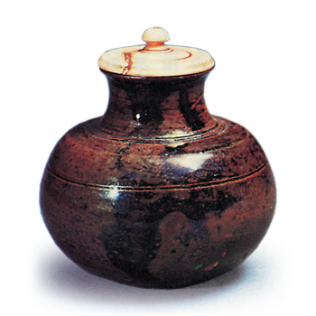 唐丸壺 からまるつぼ お話 X Facebook はてブ LINE Pinterest コピー 2011.05.242023.07.06 大名物。唐物茶大。総体に梨地釉の上に黒飴釉がむらむらと掛かり、置形には黒飴釉が口縁から肩に伝わり、釉溜まりに少々蛇娼色をみる。甑際に沈筋が二線、胴中より上に同じく一線あり、裾以下は薄鼠色の土をみせ、糸切はこまかく、手取りは軽く、無疵でおとなしい上品な茶大であります。尾張藩付家老竹腰山城守所持、のち尾張侯に移りました。(『大正名器鑑』)