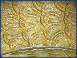 青海波状文 せいかいはじょうもん お話 X Facebook はてブ LINE Pinterest コピー 2011.02.262023.10.06 叩き技法で作る壺・水指等の内側によく見かけます。輪状の形は丸太の年輪の跡。内側には丸太、外側は板で、同時に叩き合わせて土を〆ながら作る叩き技法により、規則正しいリズムでたたくのでこのような模様が出来てきます。