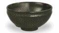 素地土はきめ細かく、堅く焼き締まっていますが、釉薬のかかっていない露胎部はいわゆる渋ぐすりでくまなく塗りつぶしてあり、もとの土の色合いはわかりません。これも華北天目にはしばしばみられるやり方です。渋ぐす力は紫かっ色を呈し、その一部は黒釉の上にかかっているから施釉してのちに鉄分の多い泥漿を塗りつけたのでしょう。