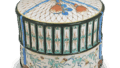 色絵 釣鐘 香炉 日本色絵 釣鐘 香炉 X Facebook はてブ LINE Pinterest コピー 2023.04.302024.01.26 色絵 釣鐘 香炉 Incese burner in the shape of temple-bell, enamelled wareHeight 16.6cm Umezawa Kinen-kan Museum高さ16.6cm 胴径11.3cm 三脚 梅沢記念館 釣鐘を形どった香炉で、龍頭を鈕にした上部が蓋になっています。 型抜きの浮文で乳頭文様があらわされていますが、同裾に剣酢漿草の家紋があらわされています。初期乳白手風の柔らかい磁胎などから推測して、寛文以前の作ですと考えられます。