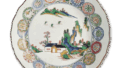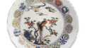 Dish with floral scroll and shippō design, enamelled ware Mark of 1699
