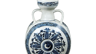 幅広い鐔状の縁をもつやや深い鉢で、縁を六方の輪花形にしています。見込中央には飛鳳文を、そのまわりには雲と花束にした野草を細い筆行きであらわし、縁には牡丹唐草を三方に配していますが、鳳凰、蛸唐草風の牡丹唐草など典型的な柿右衛門風の表現であります。素地はややあまい焼上がりの乳白手であります。外側三方には折枝文をあらわしています。これほどの大ぶりの鉢は極めて珍しい。寛文、延宝の間のものでしょうか。