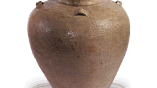 特異な形式の把手をつけた水注で、これもヨーロッパ向け輸出磁器の一つであり、近年わが国に請来されました。胴に飛鳳丸文と柘榴を三つ合わせた図を交互にあらわした珍しい図柄の作品で、おそらくティーポットとして注文されたものでしょう。その図柄も、ヨーロッパ側の注文によったものにちがいなく、素地は乳白手で延宝、元禄頃の作と思われます。