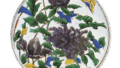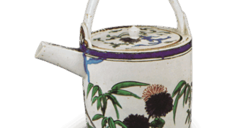 これらはほぼ同形の長方の銚子で、一時期に好んでつくられたものと推測されます。色絵牡丹文銚子は胴に籬に牡丹の図をあらわし、背に菊座の口部をもうけて菊形の蓋をつけ、口部を中心に唐草を描いています。