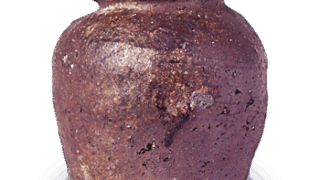 古九谷様式の色絵中皿の代表的な名作で、図38, 40などと共に六枚揃って現存しています。もとから六枚揃っていたか否かは判然とはしないが、かつて長尾美術館に所蔵されていましたものであります。いずれもこの種の輪花形中皿のうちでは抜群のできで、典型的な作例といえる。一対の鴛鴦を見事にあらわした構図は、わが国の色絵磁器のなかでも例の少ない艶やかなもので、絵画的な工芸図案の妙を尽していますといえる。裏面には左右に葉先を伸ばした牡丹唐草を二方に描き、高台内の角内に「福」字銘を書し、いずれも上絵具を用いています。