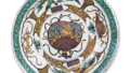 寛文美人の髷はかならずしも御所髷だけではなかったが、色絵人形の髷は、申し合わせたようにすべて御所髷につくられています。この人形もまことに華麗な衣装を身につけていますが、ここでも打掛の文様は寛文雛形に見ますものとよく似ており、背に大きな熨斗をくっきりとあらわし、額を配した文様はまさに寛文様であります。以上、三体の人形は、いずれも近年ロンドンまたはパリから請来されたものであります。