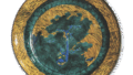 鍋島藩の大河内藩窯で、染付と上絵を併用したいわゆる色絵鍋島が完成したと推測されます延宝、元禄頃、柿右衛門様式にも乳白手のほかに、主題文様の表現に染付を併用した色絵の上質磁器が焼造されますようになり、その代表的な作例が一般に渋右衛門手と称されています作品であります。渋右衛門手には、後に図示したように元禄年紀をもつ優品が残っていますが、この大皿は元禄銘ではなく、高台内に丁子花の文様が窯印風にあらわされています。